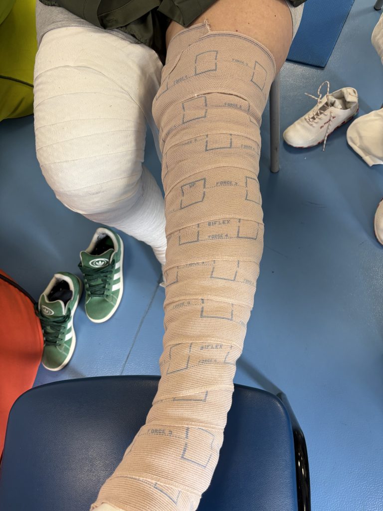 Ce samedi, les participantes ont pu découvrir et expérimenter l’auto-bandage des membres inférieurs dans une ambiance conviviale et bienveillante.